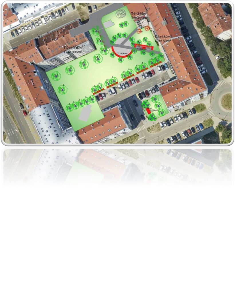 • Израда техничке документације, скица идејних решења за уређење и озелењавање зелених површина, у највећој мери јавних зелених површина Града Новог Сада, али по потреби и других зелених површина и приватних дворишта